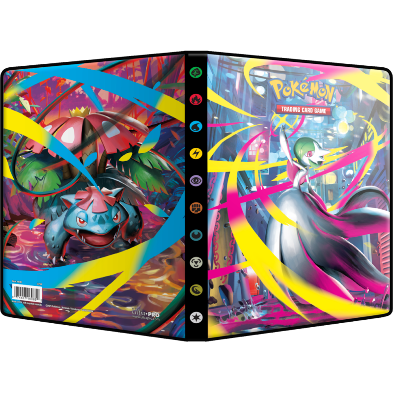 4-Pocket Portfolio od Ultra Pro to doskonały, kieszonkowy album zaprojektowany z myślą o bezpiecznym przenoszeniu i przechowywaniu mniejszej części kolekcji. Okładka albumu prezentuje dynamiczne grafiki z motywem Mega Evolution.