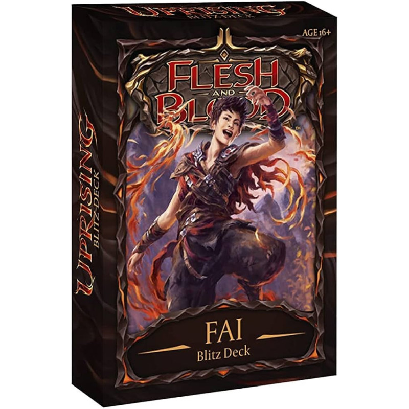 "Flesh and Blood Blitz Deck: Fai" to gotowa do gry talia dla TCG Flesh and Blood, skupiająca się na dynamicznym bohaterze Faiu, Draconicznym Ninji z dodatku Uprising. Fai jest mistrzem długich łańcuchów ataków i agresywnej, szybkiej rozgrywki. Jego styl opiera się na nieustannym ataku, wykorzystując zdolność do wielokrotnego zagrywania kart z efektem "go again" oraz recyklingu karty "Phoenix Flame", aby zasypać przeciwnika gradem ciosów.