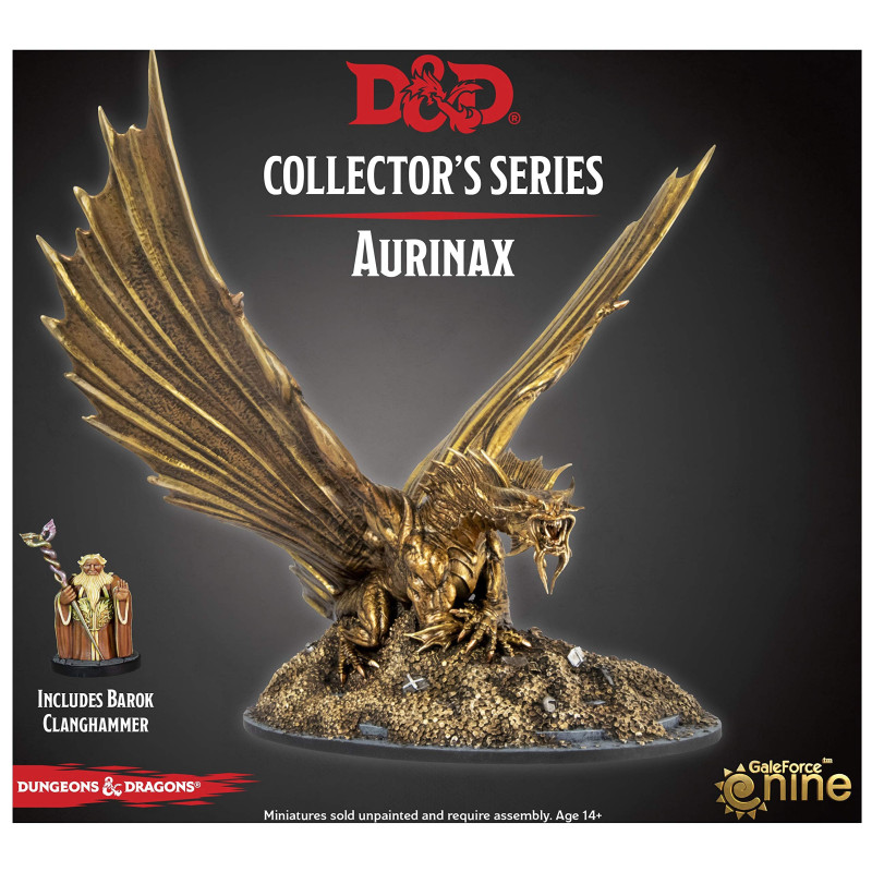 Ta wysokiej jakości, żywiczna figurka przedstawia zarówno formę smoka Aurinaxa, jak i jego krasnoludzką postać Baroka Clanghammera. Niezamalowana i wymagająca złożenia, stanowi wspaniałe wyzwanie dla hobbystów i malarzy figurek. Dodaj tego potężnego stróżka do swojej kolekcji i urozmaić swoje kampanie Dragon Heist!