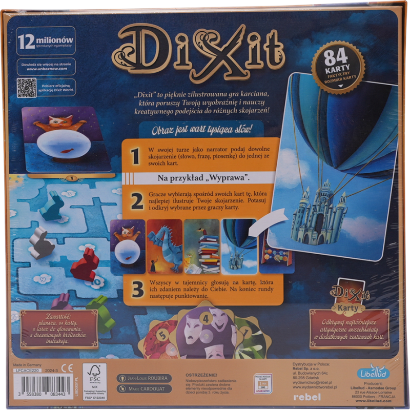 Dixit to niezwykła gra planszowa, która zdobyła serca milionów graczy na całym świecie! To opowieść, w której każda ilustracja kryje w sobie tysiące słów, a każde słowo staje się kluczem do odnalezienia odpowiedniego obrazu. Przygotuj się na podróż przez krainę wyobraźni, gdzie Twoja kreatywność i zdolność do empatii zostaną wystawione na próbę!