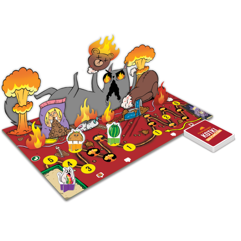 Przenieś wybuchową zabawę Eksplodujących Kotków na zupełnie nowy poziom! Eksplodujące Kotki: Gra planszowa to innowacyjna adaptacja bestsellerowej gry karcianej, która dodaje planszę, figurki postaci i nowe mechaniki, zapewniając jeszcze więcej strategicznych możliwości i absurdalnego humoru.
