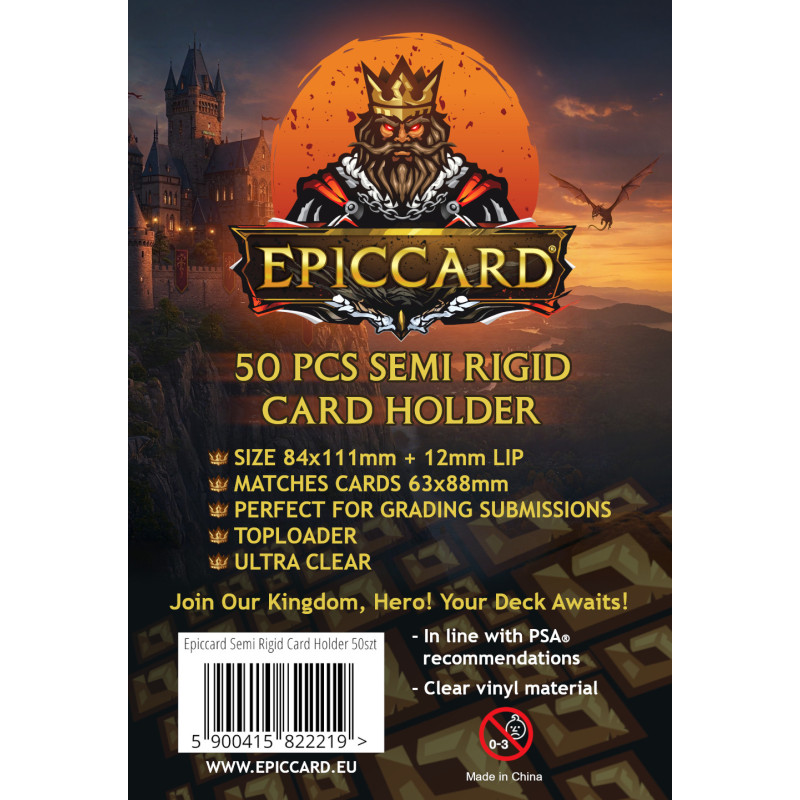 EpicCard Semi Rigid 50szt - ochrona kart do gradingu. Ultra clear vinyl 84x111mm. Top jakość!