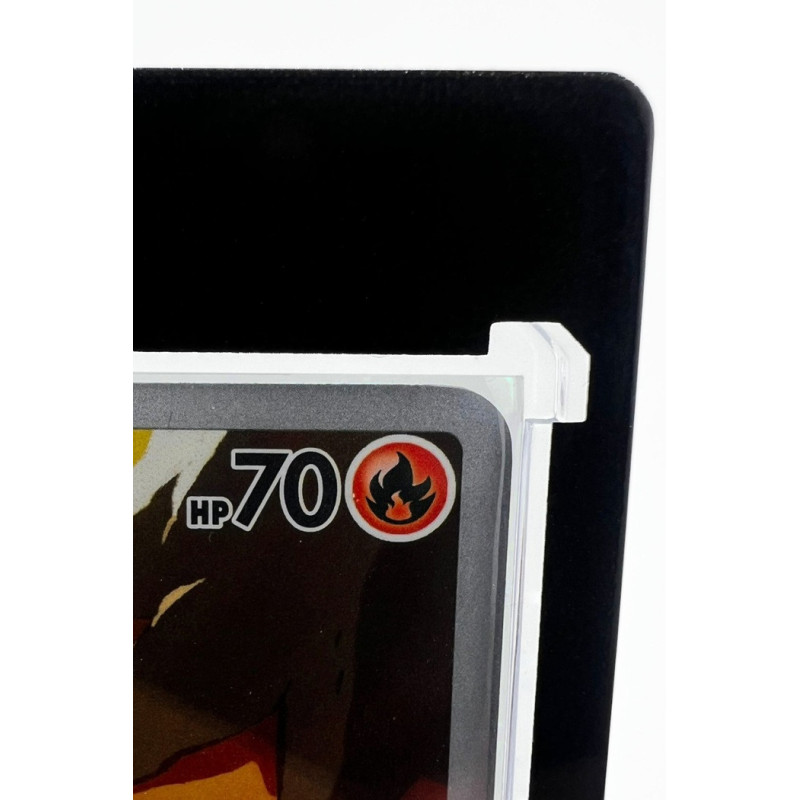 Magnetyczny holder z czarną ramką 35PT do prezentacji najcenniejszych kart TCG. Dwuczęściowa konstrukcja z magnetycznym zamknięciem - bez potrzeby śrub. Diamond corners chronią rogi kart podczas ekspozycji. UV protection + acid-free akryl zapewniają długotrwałą ochronę. Wymiary: 73x110mm, grubość 7mm.