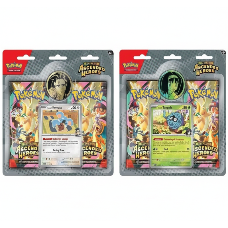 Kompletna kolekcja trenerów! Przedmiotem oferty jest pełny zestaw dwóch blisterów z serii Ascended Heroes. Kupując ten komplet, masz pewność otrzymania obu wariantów graficznych: Larry'ego oraz Eriki. To najlepszy sposób na zdobycie wszystkich kart promo Foil z tej edycji oraz łącznie czterech boosterów z najnowszymi Pokémonami Mega Evolution ex i Stellar Tera ex.