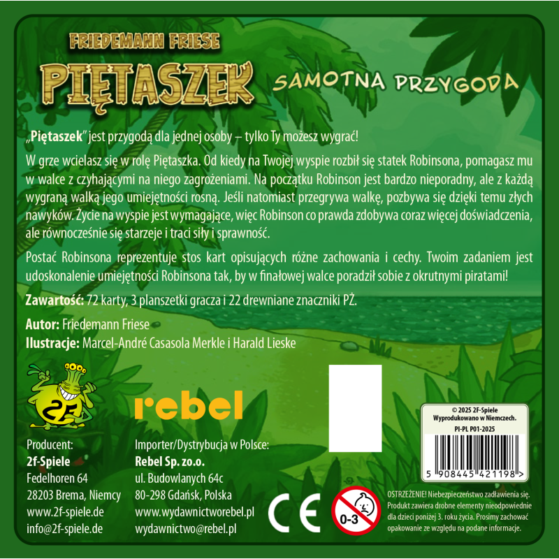 Piętaszek to polskie wydanie uznanej gry planszowej (karcianej) Friedemanna Friese. Gra jest w pełni w języku polskim, z polską instrukcją i wszystkimi komponentami.
