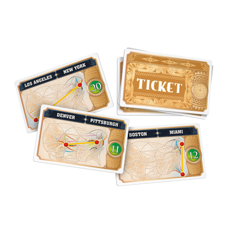 Twoim celem jest zbieranie kart przedstawiających wagony i używanie ich do łączenia miast nieprzerwaną trasą kolejową. Gracze rywalizują o realizację swoich tajnych biletów, które wyznaczają miasta do połączenia, a także o zbudowanie najdłuższej trasy na mapie. Proste zasady i szybka rozgrywka sprawiają, że można w nią grać wielokrotnie, a każda partia dostarcza nowych, strategicznych wyzwań.