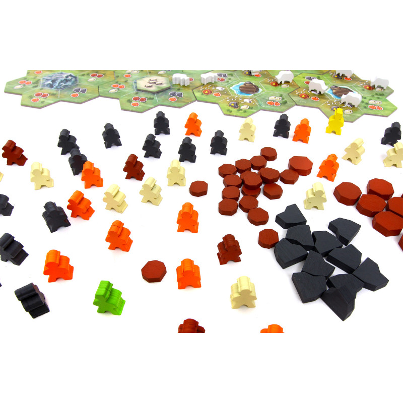 - Dynamiczna rozgrywka typu worker placement z elementami budowania osad