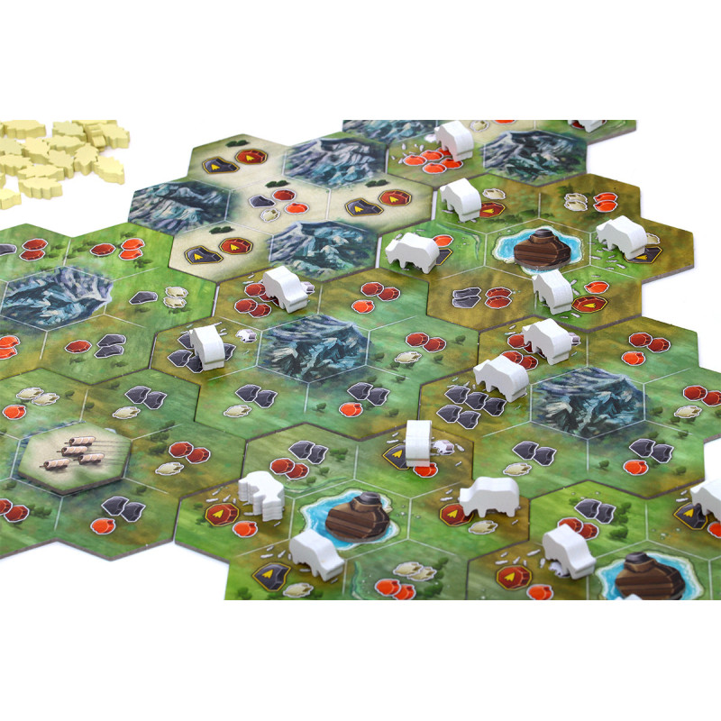 Wyślij swoich robotników do pracy, aby pozyskiwać cenne surowce takie jak kamień, miedź, zboże, dynie i srebro. Strategicznie planuj ich rozmieszczenie na modularnej planszy, rywalizuj o najlepsze tereny i wykorzystuj unikalne możliwości, jakie oferuje każdy z nich. Nie zapomnij o handlu i licytacji dyń, które mogą dać Ci cenne przewagi! Zbuduj określoną liczbę osad jako pierwszy, aby zwyciężyć w tej dynamicznej i satysfakcjonującej grze.