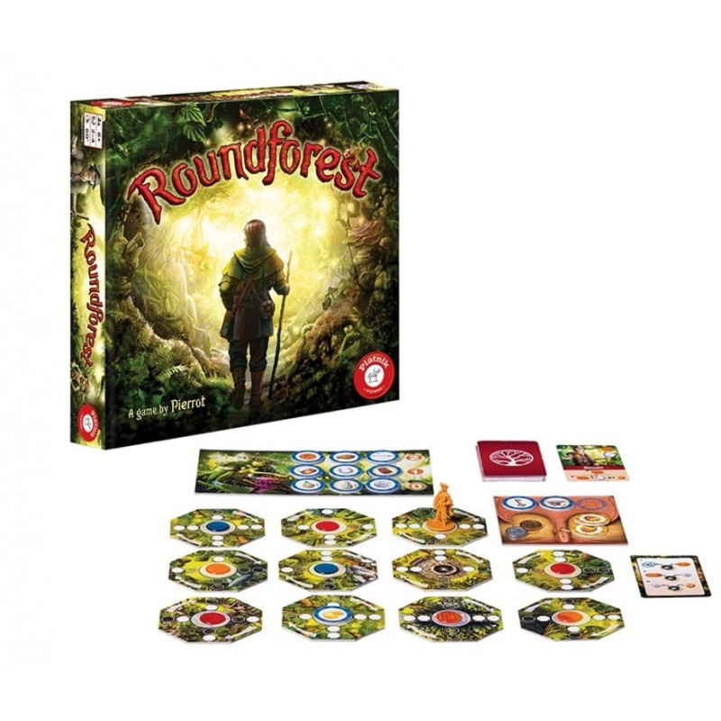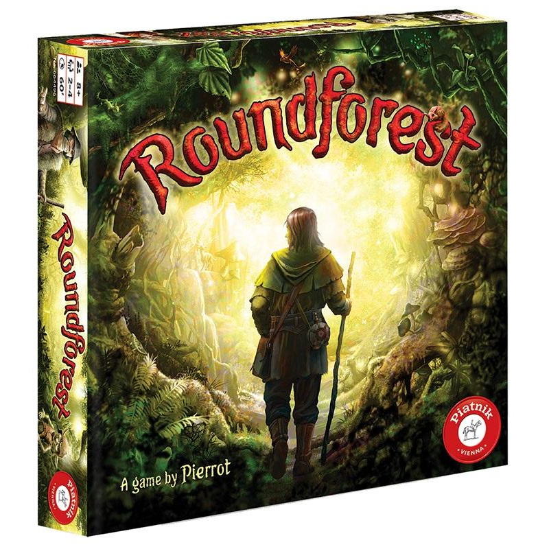 Roundforest (edycja polska) to pasjonująca przygoda dla 2-4 graczy od 8 lat. Jej celem jest zdobycie szmaragdowego pierścienia. Aby go zdobyć, trzeba zebrać trzy złote jabłka i spełnić wszystkie wymagania napotkanych postaci.