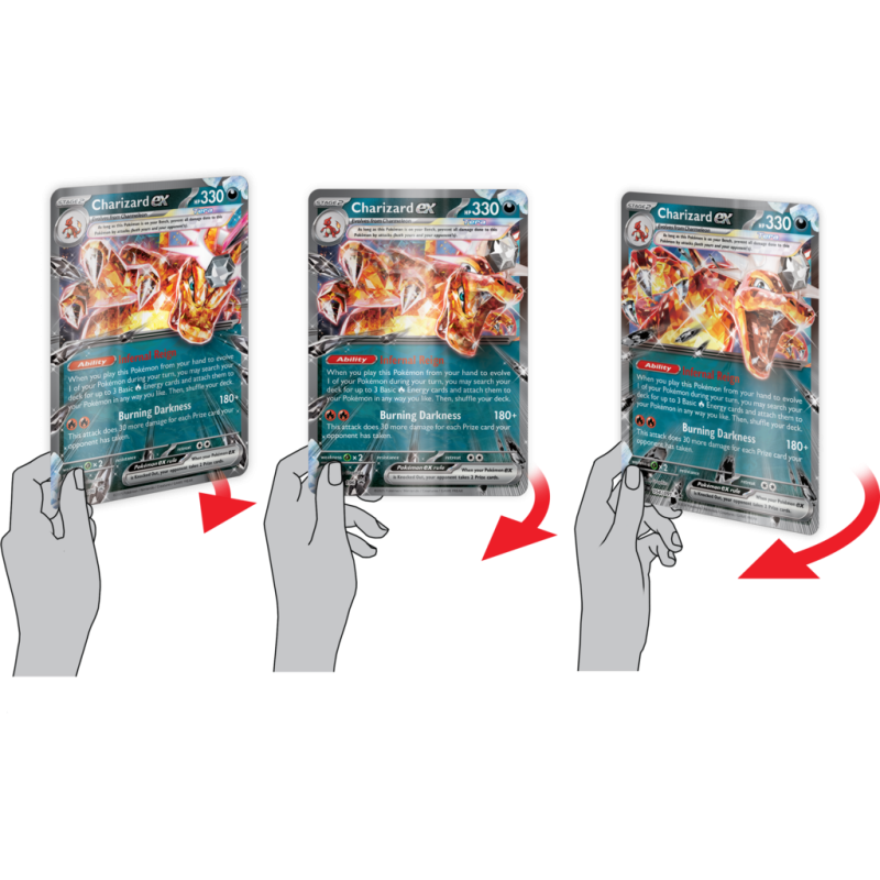 Charizard ex wypali do cna przewagę przeciwnika dzięki podstępnej potędze ognia Pokémona typu Darkness! Wyewoluuj go z Charmandera i Charmeleona, a następnie użyj jego silnej umiejętności i zaatakuj, aby powrócić w ryczącym stylu!
