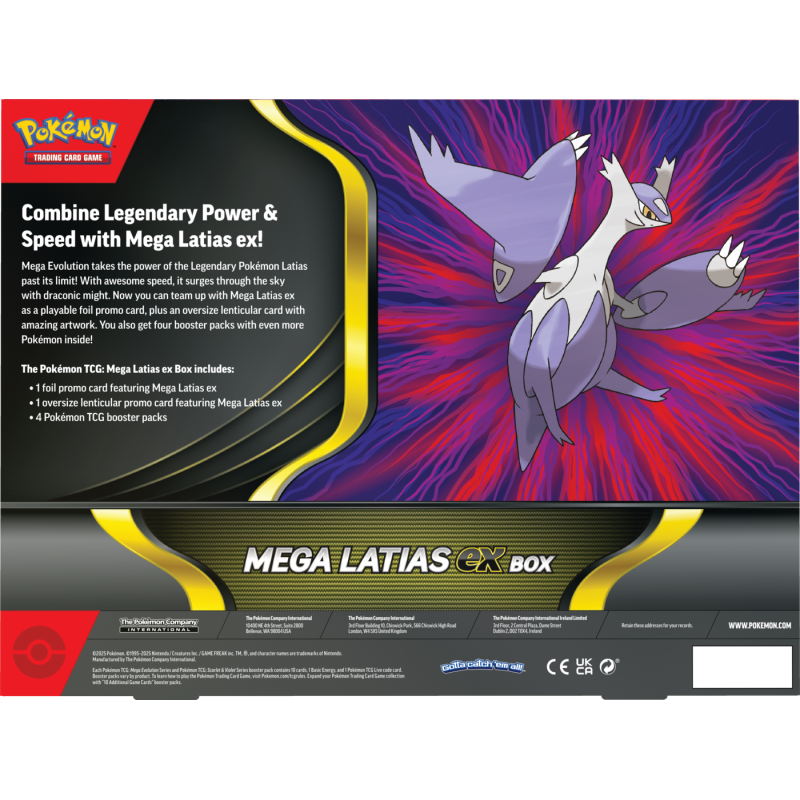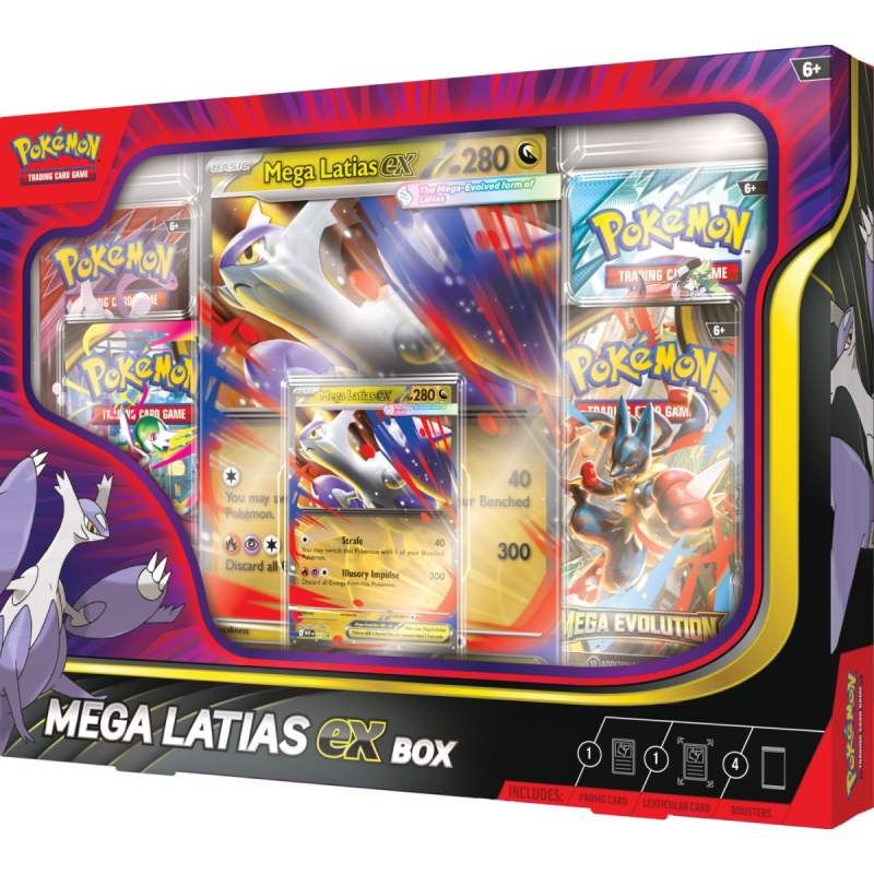 Wzbij się w przestworza z potężnym Mega Latias ex Box! Ten zestaw celebruje Legendarnego Pokémona Eon z regionu Hoenn i jego potężną Mega Ewolucję. To idealny produkt dla kolekcjonerów i graczy, którzy chcą wzmocnić swoje talie Pokémonów.